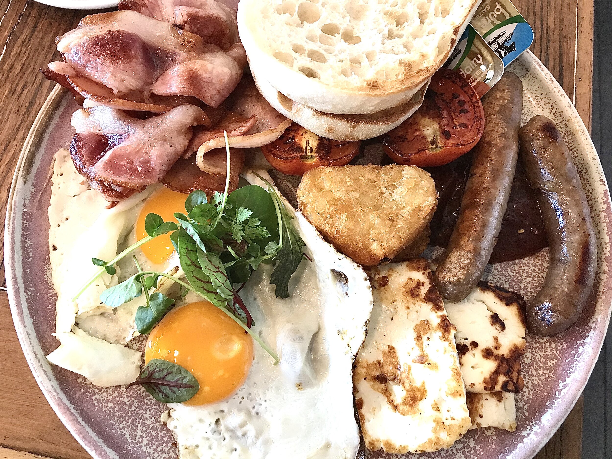 Sir’s ‘go to’ breakfast or brunch is usually something grilled so from the ‘Classic’ menu he had the “Big Breaky”. This again was a substantial serving with eggs (the way you like them) so Sir had them fried and sunny side up cos he likes to cut into the yolk it and see it’s golden goodness ooze out. It also had a pile of bacon, beef sausages with relish, hash browns, roasted tomatoes and a stack of Turkish toast. He also added a side of halloumi - oink oink! The challenge was where to start with this big amazing breakfast? Again, this looked so good and tasted so good. It was a hearty breakfast to start the day which Sir really enjoyed and eagerly devoured.